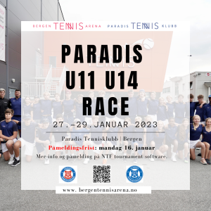 Paradis Tennisklubb ønsker spillere velkommen til Paradis U11 U14 Race som spilles 27.-29. januar på Bergen Tennis Arena.